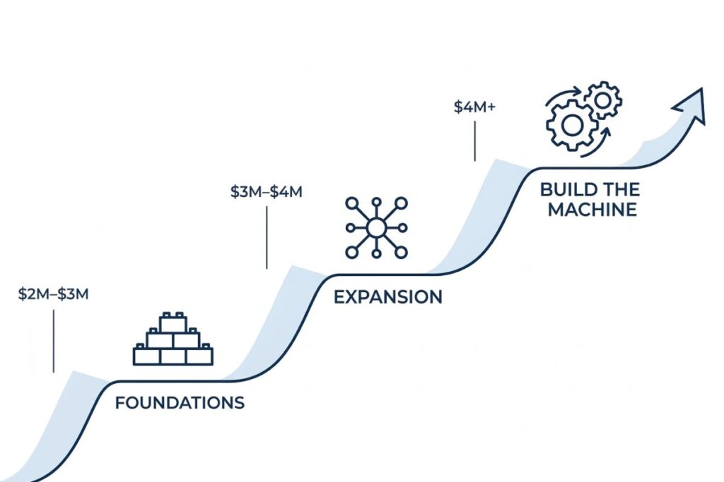 Growing a home services business from $2M to $4M (and eventually beyond!) requires more than just increasing your lead volume or adding new marketing channels. Sustainable growth comes from knowing exactly what to add, when to add it, and how each layer of your business should mature as revenue scales.